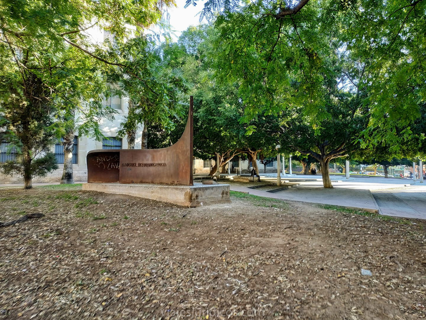 En los jardines de los juzgados de Alicante existe una figura metálica en homenaje al poeta Miguel Hernández, y es que a esta cárcel Miguel fue trasladado en 1941 procedente del Penal de Ocaña (Toledo) y fue donde murió enfermo de tuberculosis el día 28 de marzo de 1942. En la capilla del reformatorio de Alicante contrajo matrimonio canónico con Josefina Manresa el 4 de marzo de 1942, solo 24 días antes de su muerte. Durante su periplo carcelario, Miguel Hernández estuvo en cárceles de Sevilla, Orihuela, Palencia, Madrid, Albacete, Ocaña, y, finalmente, Alicante. Fue en la cárcel de Torrijos en Madrid donde su amigo, el escritor Buero Vallejo, dibujó el más conocido de todos los retratos del poeta oriolano Miguel Hernández, tan solo dos años antes de su muerte. La escultura de los juzgados de Alicante, tiene forma de una cama hospitalaria y, se instaló en este lugar pues ahí se encontraba la enfermería de la cárcel donde el poeta murió. En nuestra entrada sobre Orihuela os contamos más sobre el genial poeta Miguel Hernández y su ciudad natal.