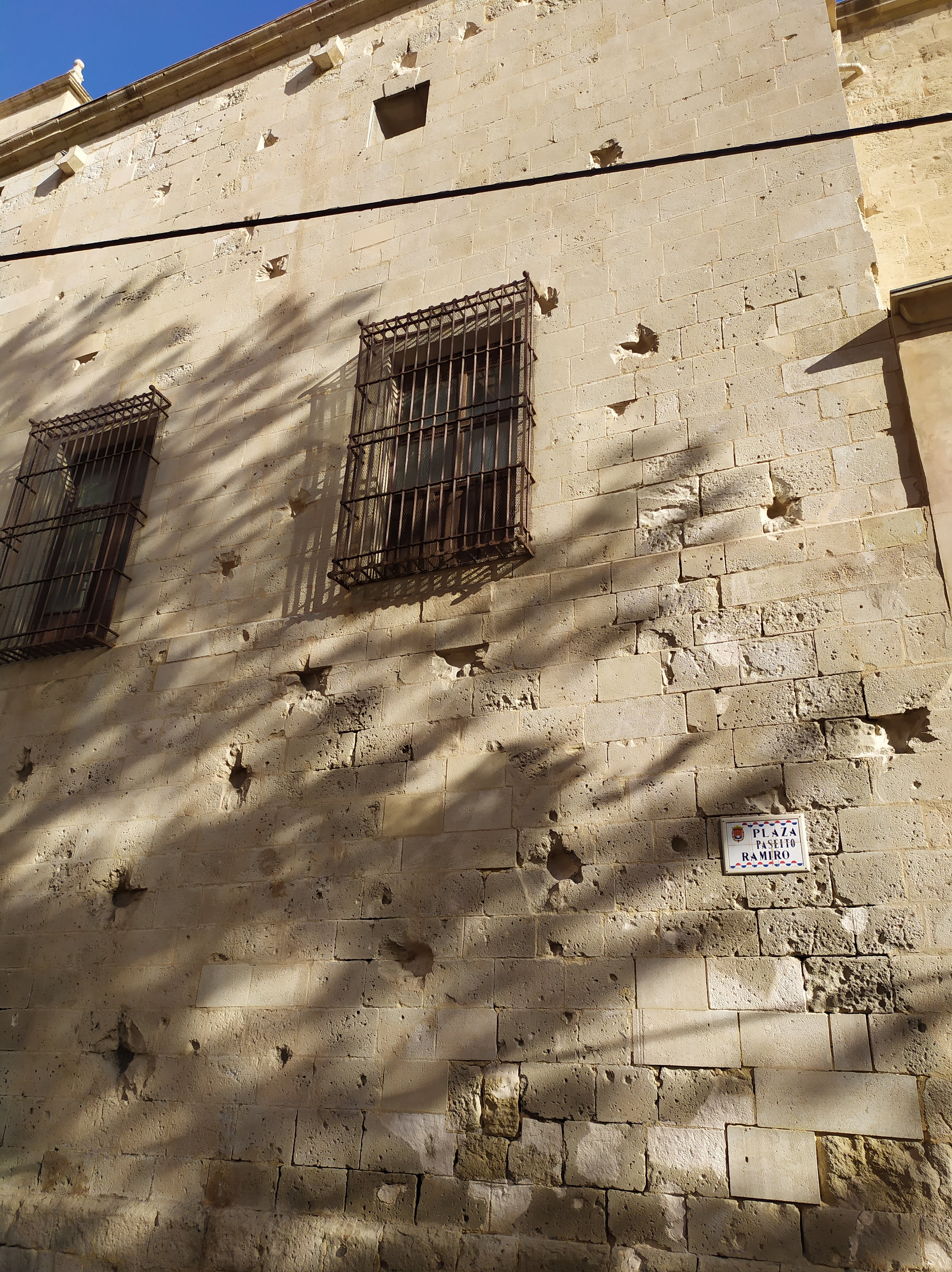 Nos quedaría por visitar la basílica de Santa María, la iglesia más antigua de la ciudad de Alicante del siglo XIV, destaca su portada barroca con sus dos torres asimétricas, el edificio no se libró de los ataques desde el mar de 1691 y durante la Guerra de Sucesión; en la fachada que da hacia mar se pueden ver los daños de la metralla en la piedra y alguna bala de cañón incrustada.