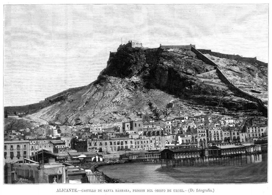 … El castillo de Alicante fue perdiendo importancia militar, sirviendo de prisión donde acabaron algunos ilustres personajes como el liberal José María de Torrijos, el Obispo de Urgel, Sr. Caixal y Estrado, el Marqués de Valdeflores (académico de la Historia), el Conde de Lumiares (arqueólogo) o el General D. Juan Prim. En 1918, el castillo sirvió como alojamiento de enfermos del cólera y luego de mendigos.