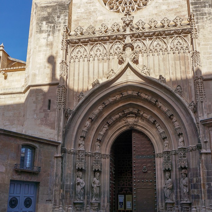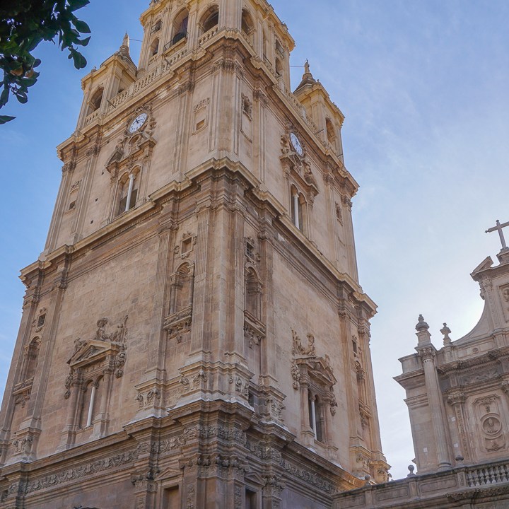 El acceso a la Catedral de Murcia podremos hacerlo desde la fachada de la plaza Belluga. En la catedral murciana o Iglesia de Santa María se mezclan distintos estilos desde el gótico, al renacentista y barroco. Comenzó su construcción hacia 1385 sobre una antigua mezquita. En su interior destaca la capilla de los Vélez de estilo gótico flamígero y la capilla de Junterones del siglo XVI. También, podremos encontrar la capilla de Jacobo de las Leyes (o de la Anunciación) erigida en 1527 en estilo renacentista en honor al citado jurista y la capilla del Beato Andrés Hibernón donde descansa, en cumplimiento de su testamento, el murciano Diego Saavedra Fajardo (1584-1648) jurista, político, escritor y diplomático que intervino en la pacificación de la Guerra de los Treinta Años durante las negociaciones de la Paz de Westfalia (1648); fue autor de obras como la Locura de Europa donde apelaba a la concordia universal, La república literaria o Empresas Políticas-Idea de un Príncipe Político Christiano.