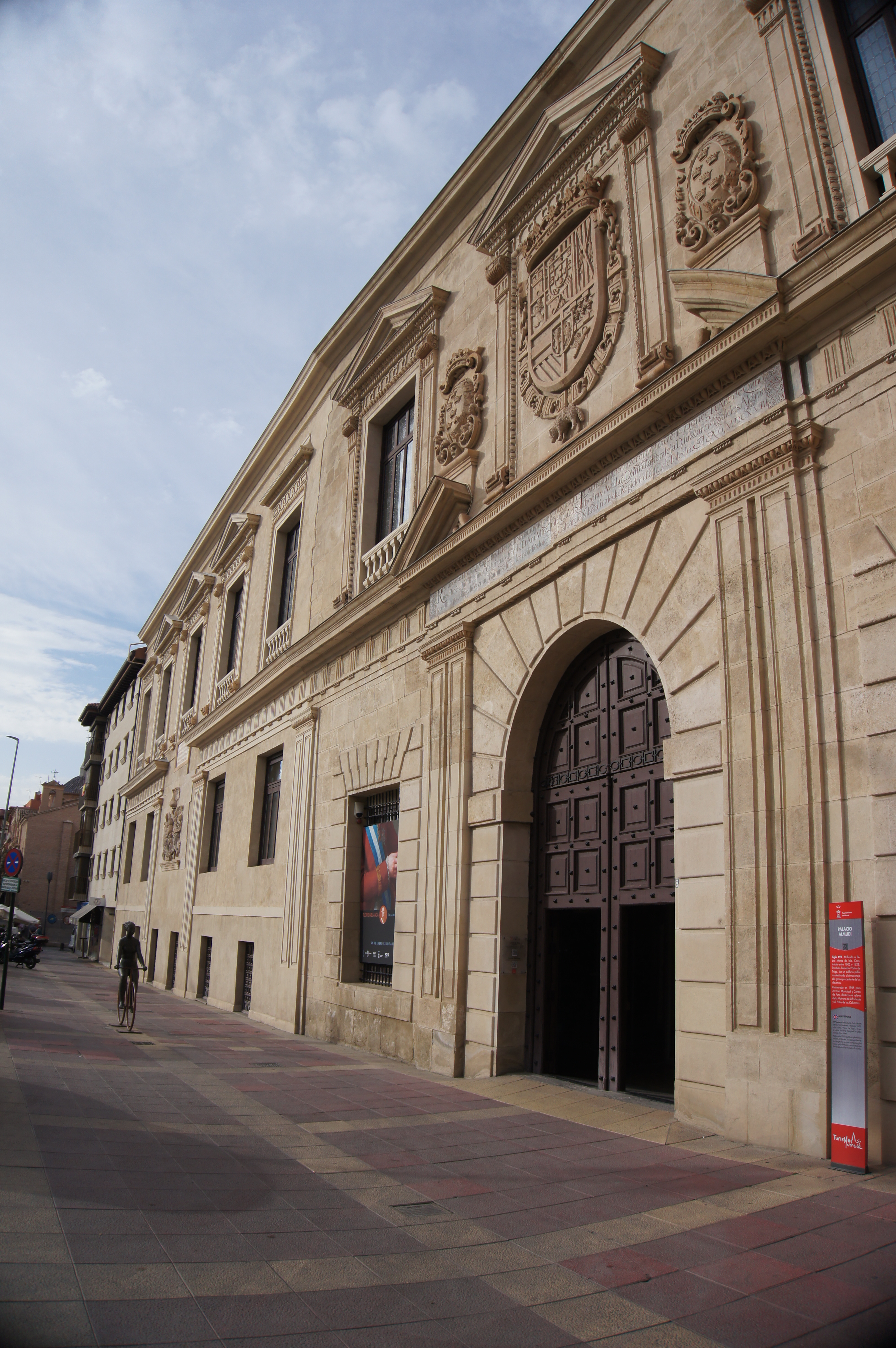 ….Llegamos a la plaza de la Glorieta de España, donde el Ayuntamiento de estilo neoclásico (1848) nos recibe frente al puente de los Peligros (1742). En dicha plaza ya encontramos buena parte de la fachada del imponente palacio episcopalde Murcia y la estatua de su mayor representante eclesiástico, el jefe militar (de ahí su espada) Cardenal Belluga.