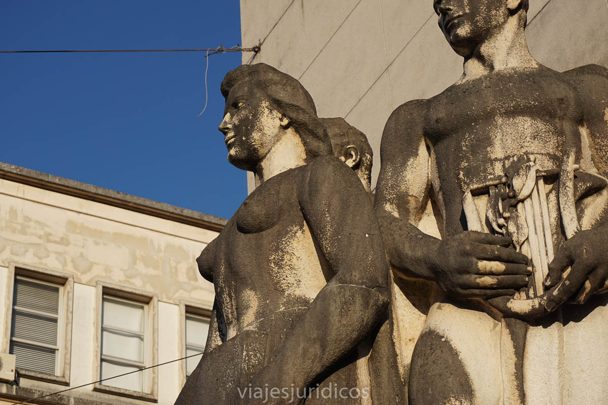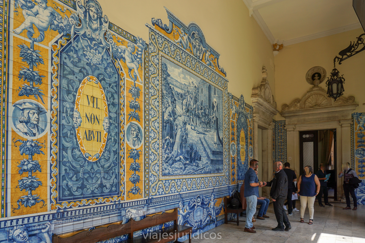 El Palacio de Justicia de Coimbra en su diseño propone inculcar una lección épica de historia portuguesa, inspirada en las «Lusíadas», a través de la cerámica de sus paredes.