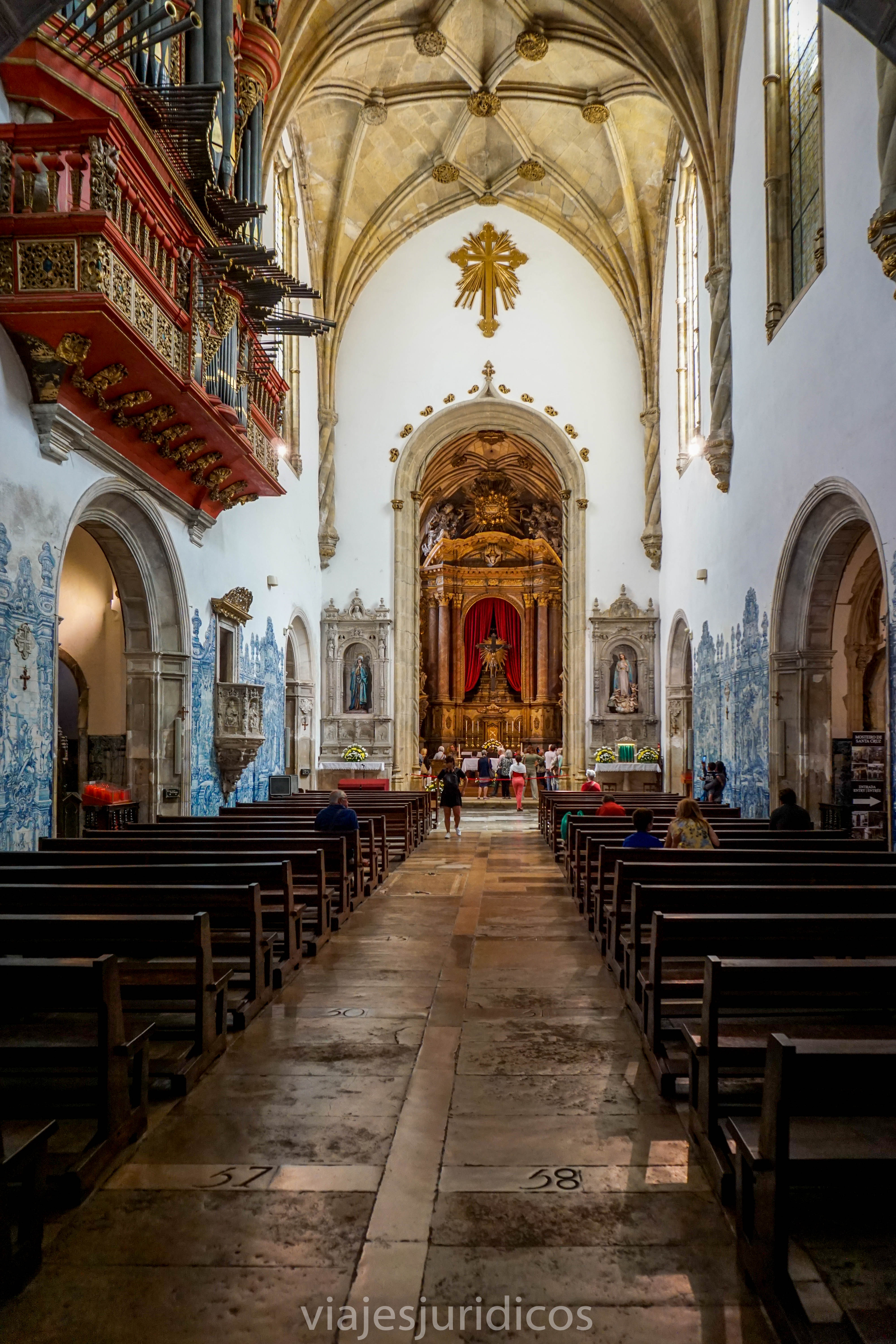 Dejando la Universidad y la zona Alta, como así es conocida, nos adentraremos por sus estrechas y empinadas calles por donde algunos coches desafían la gravedad y se juegan algún roce. Nos encontramos con peculiares casas, negocios y con la Catedral Vieja – Sé Velha que nos recuerda a una fortaleza. Es obra cumbre del arte románico portugués del siglo XIII. Destacan sus capiteles de piedra con motivos y decoraciones vegetales y geométricas, con pocas representaciones humanas o de pasajes bíblicos. En la Sé Velha se mezclan azulejos junto al estilo gótico-románico de su claustro y detalles del Renacimiento como la Porta Especiosa en la fachada norte.