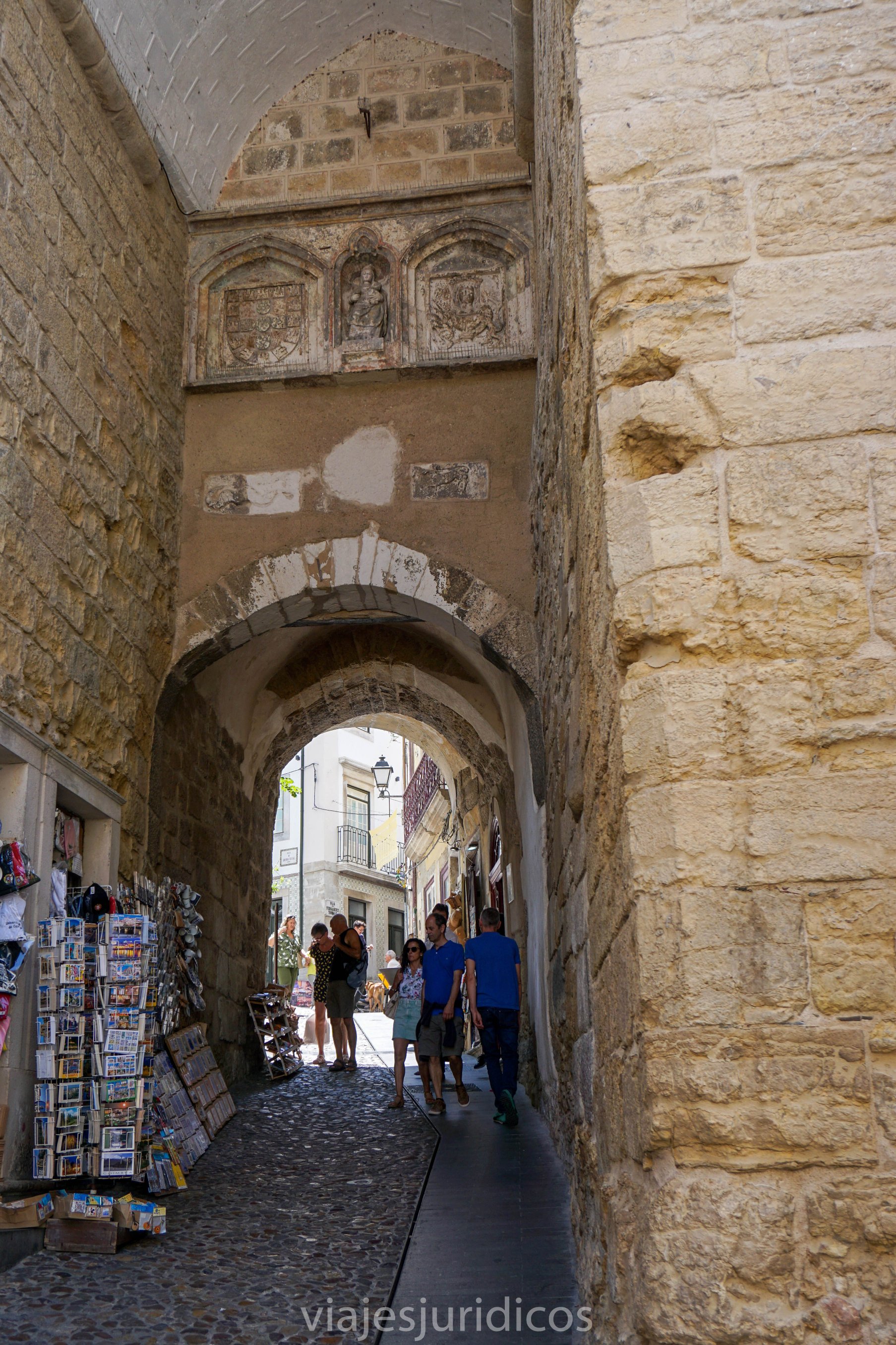 Bajando por la rua de Quebra Costas (rompe espaldas) saldremos de Alta a la Baixa por el arco de la torre Almedina puerta de la que fuera muralla medieval construida por Almanzor. En este histórico punto es donde durante los s. XIV y XV se instaló el Concejo de la Ciudad y el Tribunal da Relação de la ciudad.