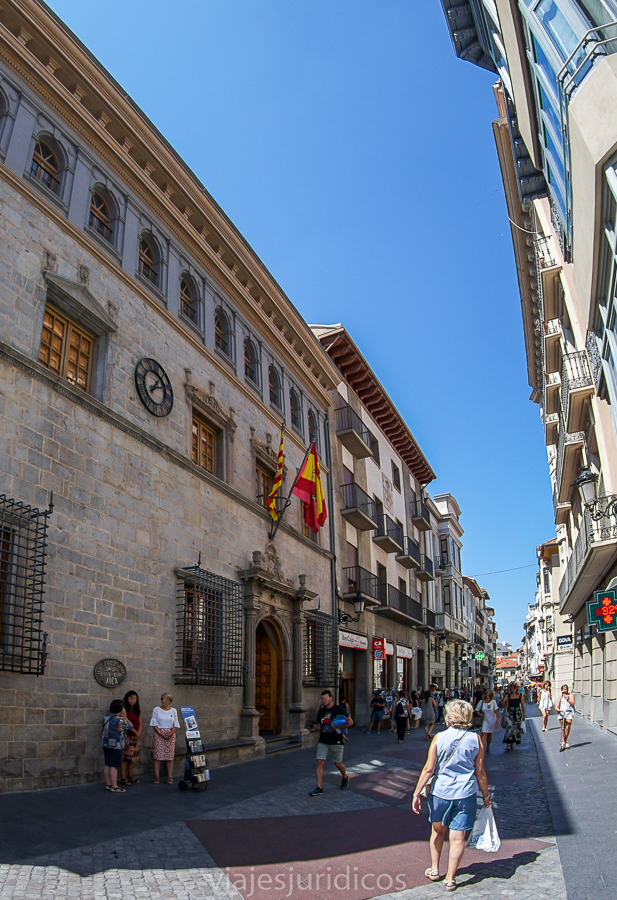 Continuamos, tras la visita a la Catedral, por las calles y plazas que la rodean, abarrotas de gentes y comercios muy animados (un magnífico día soleado ayuda) como la plaza Ripa o Biscós o calle Zocotín, Bellido, hasta llegar a la calle Mayor donde hallaremos la sede del Ayuntamiento de Jaca.