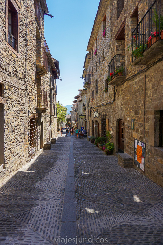 Desde Santa María se toma la calle de Santa Cruz o de los artesanos para recorrer el bonito casco medieval de la ciudad, donde también encontraremos algún mirador con vistas hacia las montañas cercanas y, en un recorrido circular, tras pasar por alguna emblemática casa tradicional, como casa Latorre, que alberga el museo de Oficios y Artes Tradicionales, regresando por calle la Mayor volveremos a la plaza Mayor de Aínsa.