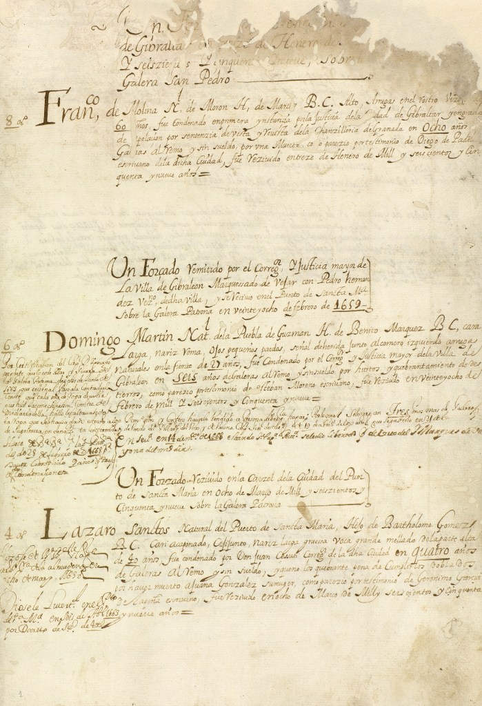 En Cartagena se conservan los Libros Generales de la Escuadra de Galeras de España del siglo XVII. Los Libros de Galeras son una recopilación de pasajeros de las escuadras de galeras, de los que se conservan unos 25 tomos. En ellos, conforme regulaba una Real Orden de 1557 ordenando la puesta en marcha de estos libros, se anotaban, tanto a la tripulación como a los forzados apuntándose sus rasgos, procedencia, juzgado que lo enviaba y tiempo de cumplimiento.