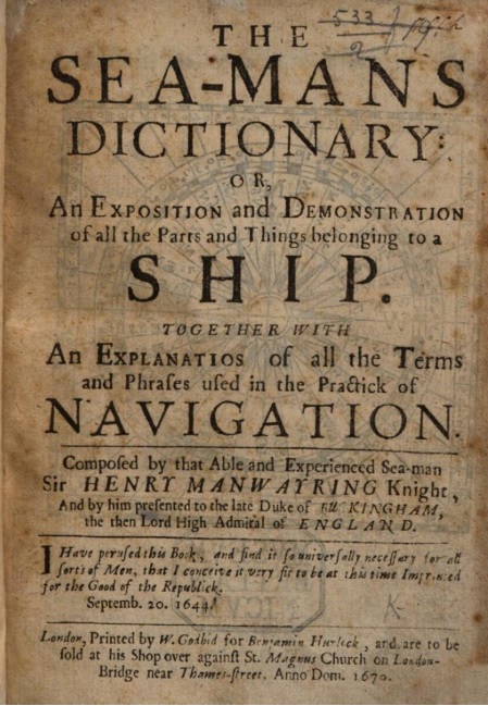 Henry Mainwaring también escribió un influyente diccionario náutico, The Sea-Mans Dictionary, de unas 130 páginas con las descripciones de términos relevantes para la gente de mar en el siglo XVII.