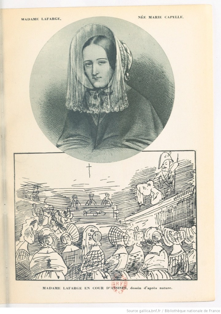 Marie Lafarge fue llevada a juicio. El asunto pronto fue noticia en toda Francia, el juicio se siguió a diario por los periódicos y se crearon corrientes de opinión con detractores y partidarios de la inocencia de Marie quien se presentó ante el jurado del Tribunal de Tulle el 3 de septiembre de 1840 como una víctima injustamente acusada de la muerte de su marido.