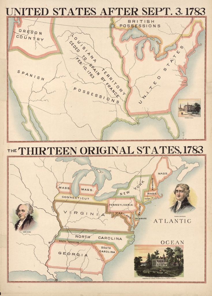 El Tratado de París de 1783 reconocía formalmente a Estados Unidos como una nación independiente con un territorio que llegaba desde Canadá hasta el río Misisipi. Esto fue una clara victoria para los estadounidenses. Los británicos debían retirar sus tropas de las colonias norteamericanas y conceder a los americanos el derecho a pescar en las aguas costeras de Canadá. Los Estados Unidos aceptaron permitir que los comerciantes británicos cobraran sus deudas pendientes, y que se devolviesen las propiedades confiscadas durante la guerra a los leales a Gran Bretaña.